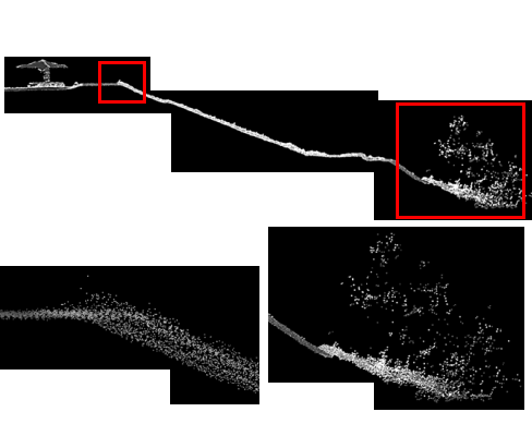 The accuracy verification by the drone mounted near infrared laser scanner was carried out by comparing the survey result of the verification point by the total station and the survey result by the drone mounted near infrared laser scanner.
